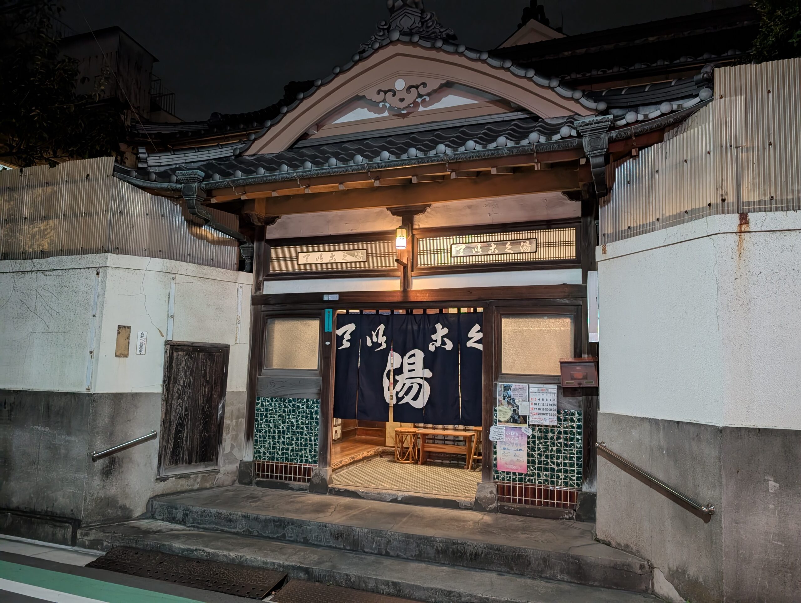 住宅地の中に荘厳なただづまい。王道の下町銭湯だ。