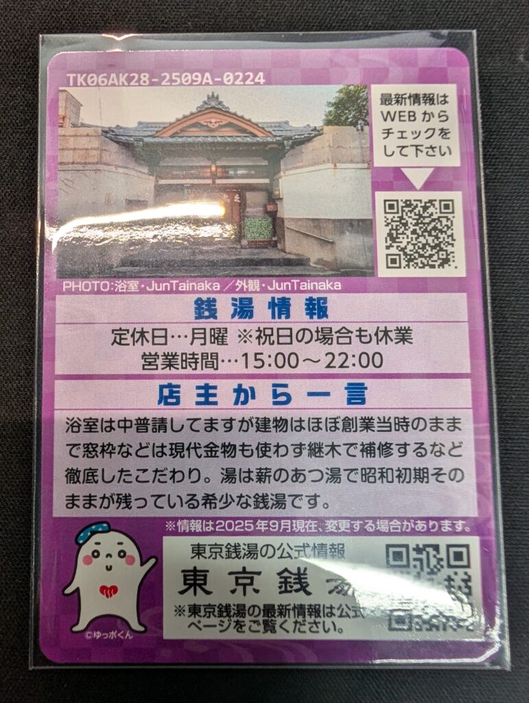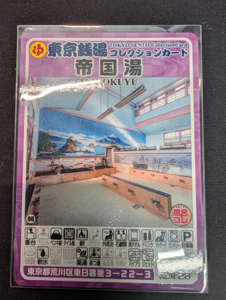 東京銭湯コレクションカードは、都内各地の銭湯をめぐるスタンプラリーのような存在だ。記念に購入した。