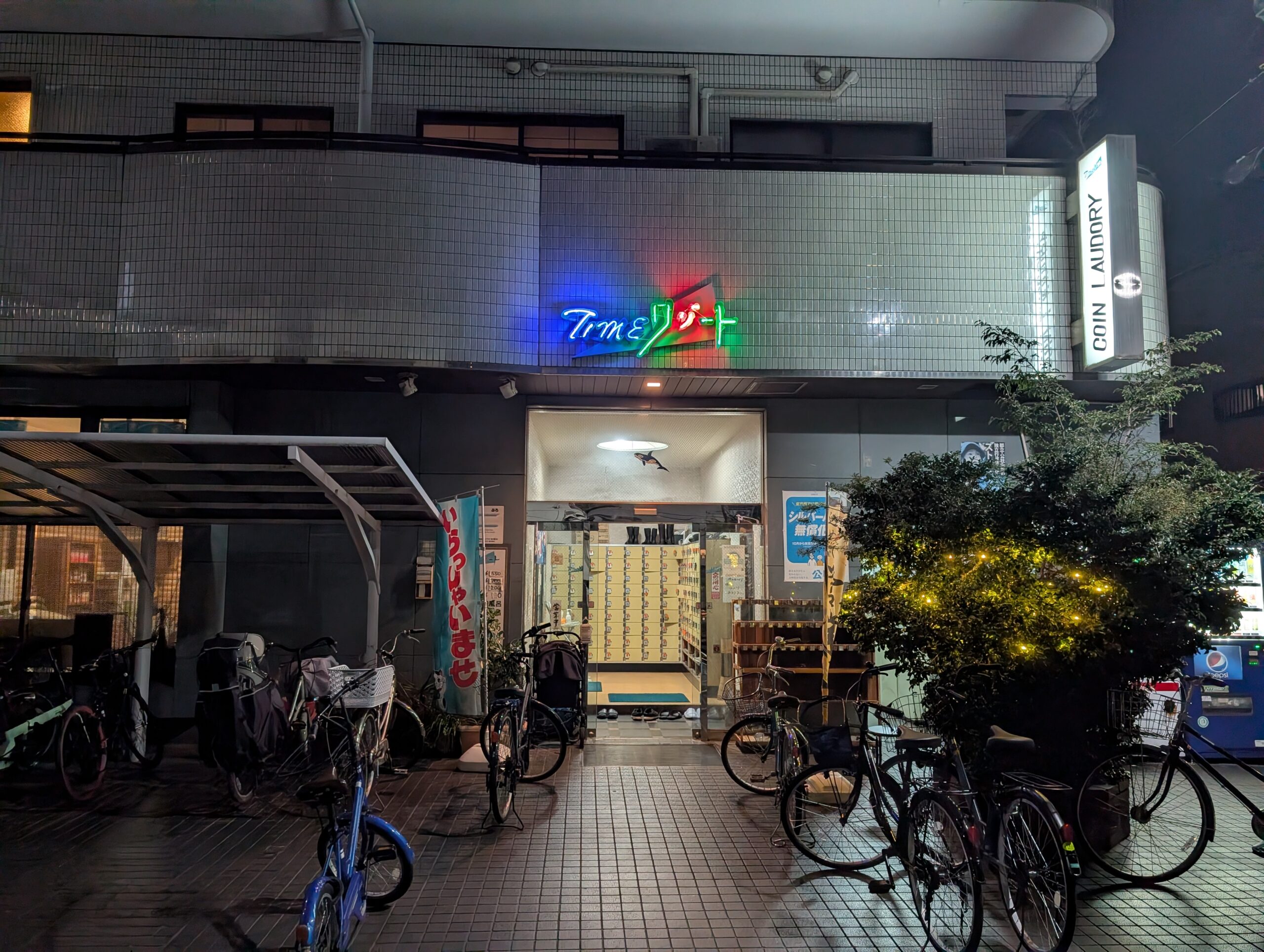 住宅街の中に目を引く昭和のネオンサイン。なんだか見てるだけでも楽しくなってくる。